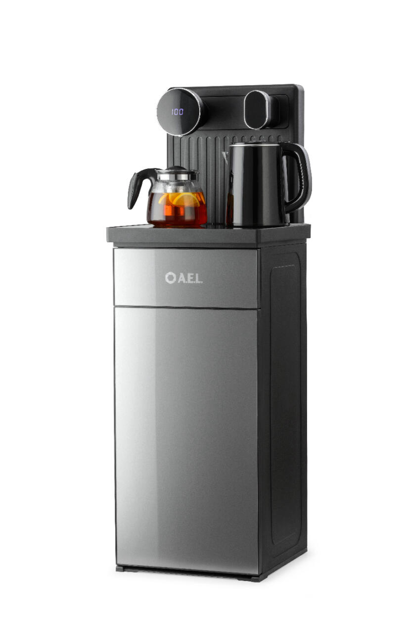 Оригинальное исполнение кулера с нижней загрузкой бутыли и без охлаждения, состоит из заварочного и электрического чайников, сенсорной панели управления и шкафчика для хранения. Яркая световая индикация и информативный дисплей на сенсорной панели сообщат о текущем режиме и подключении к сети.