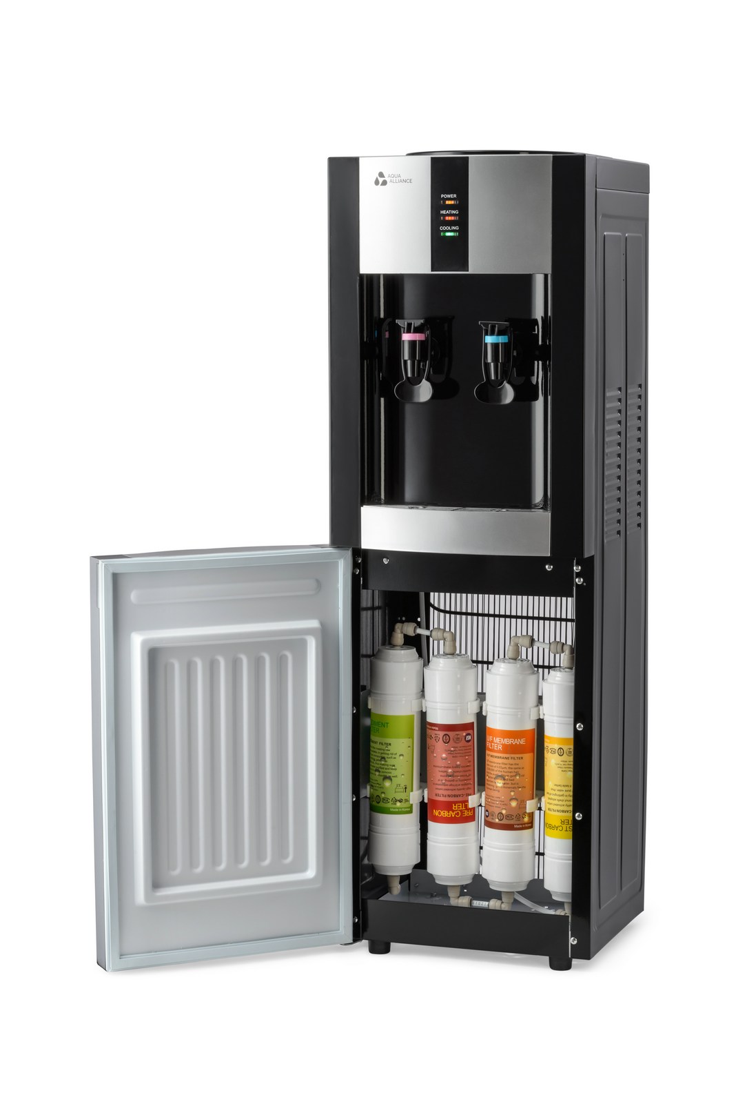 Представляем новинку в ассортименте AQUA ALLIANCE - напольный пурифайер компрессорного типа с 4х UF-системой очистки. Модель укомплектована внешним нагревательным элементом и баком нагрева 1,2л, удобными краниками черного цвета нажим чашкой с внутренней резьбой . Цвет: черный корпус с серебряными вставками, боковые панели черного цвета. Комплектация: кран врезки, трубка 1/4 - 3 метра, фильтры тип - I тип, фильтры размер - 12", инструкция.