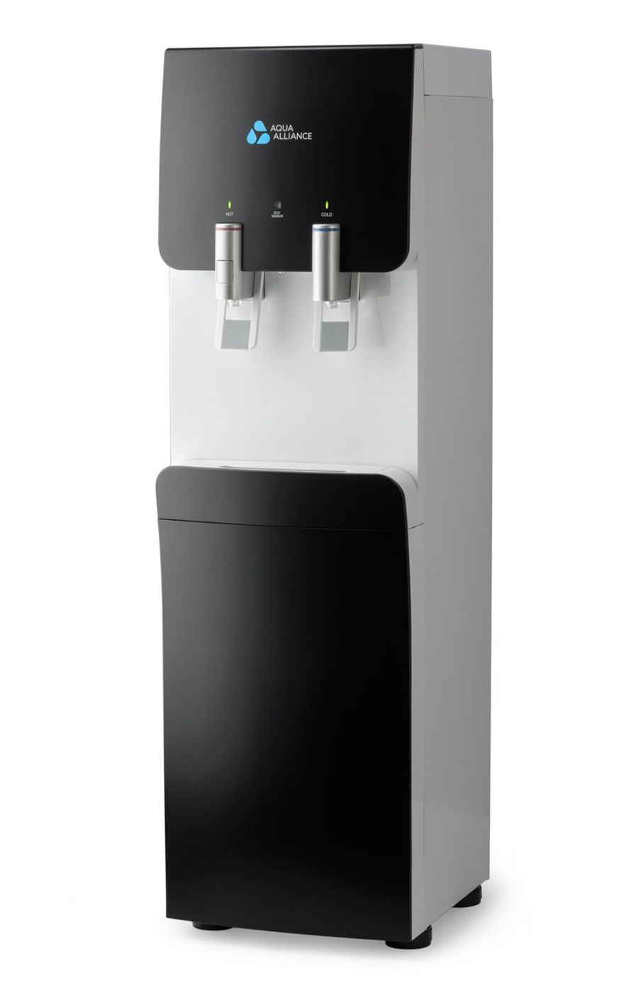 Стильный и необычный дизайн аппарата, подача воды управляется краниками. Имеется система непорционного получения воды. Панель индикации работы систем охлаждения, нагревания. Наличие режима экономии энергии/ Наличие функции «защита от ожогов» (на кранике горячей воды имеется кнопка, блокирующая подачу горячей воды). Цвет черный с белой вставкой.
