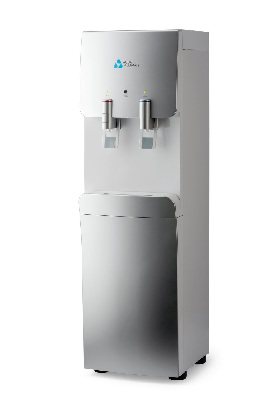 Стильный и необычный дизайн аппарата, подача воды управляется краниками. Имеется система непорционного получения воды. Панель индикации работы систем охлаждения, нагревания. Наличие режима экономии энергии Наличие функции «защита от ожогов» (на кранике горячей воды имеется кнопка, блокирующая подачу горячей воды). Цвет серебро с белой вставкой.