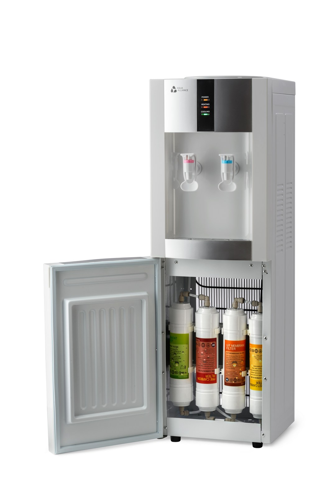 Представляем новинку в ассортименте AQUA ALLIANCE - напольный пурифайер компрессорного типа с 4х UF-системой очистки. Модель укомплектована внешним нагревательным элементом и баком нагрева 1,2л, удобными краниками белого цвета нажим чашкой с внутренней резьбой. Цвет: белый корпус с серебряными вставками, боковые панели белого цвета. Комплектация: кран врезки, трубка 1/4 - 3 метра, фильтры тип - I тип, фильтры размер - 12", инструкция.