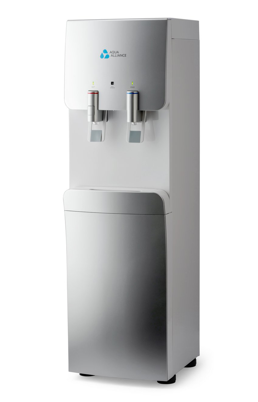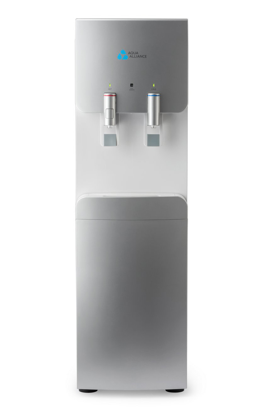 Стильный и необычный дизайн аппарата, подача воды управляется краниками. Имеется система непорционного получения воды. Панель индикации работы систем охлаждения, нагревания. Наличие режима экономии энергии. Наличие функции «защита от ожогов» (на кранике горячей воды имеется кнопка, блокирующая подачу горячей воды). Цвет серебро с белой вставкой.